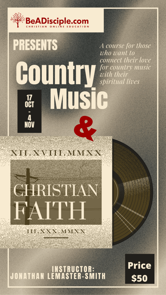 Also, Like Country Music? Consider my class “Country Music and Christian Faith” at BeADisciple.com
