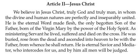 THEN – it has to go before each annual conference and we have to have 3/4 of all voting members of all annual conference meetings vote to remove. And then, should this pass, then we have to go to the next General Conference and vote to remove or change these articles (some of which we have had since the early 1800s). I highly doubt we can get a group of 600-1000 Christians to agree that Jesus Christ is not the song of God, and then get 3/4 of all Methodist representation from around the world to vote on this.